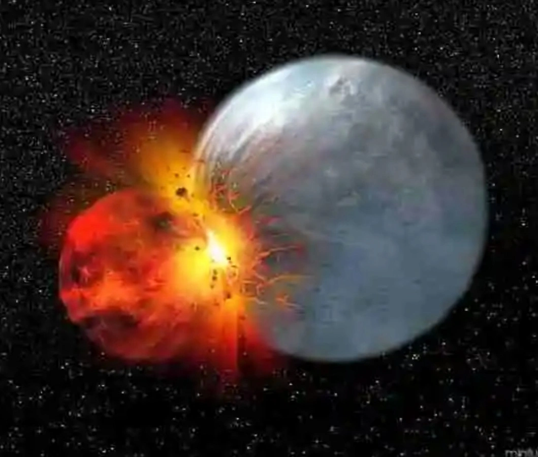 Günümüzden 4.5 milyar yıl kadar önce Mars boyutlarında Theia adında bir ön-gezegen, Dünya'ya çarparak gezegenimizden çok büyük parçalar kopararak uzaya dağıtmıştır. Kütle çekimi nedeniyle uzaya fırlayan parçalar birbiriyle bütünleşmiş ve bugün "Ay" adını verdiğimiz uydumuzu oluşturmuştur.