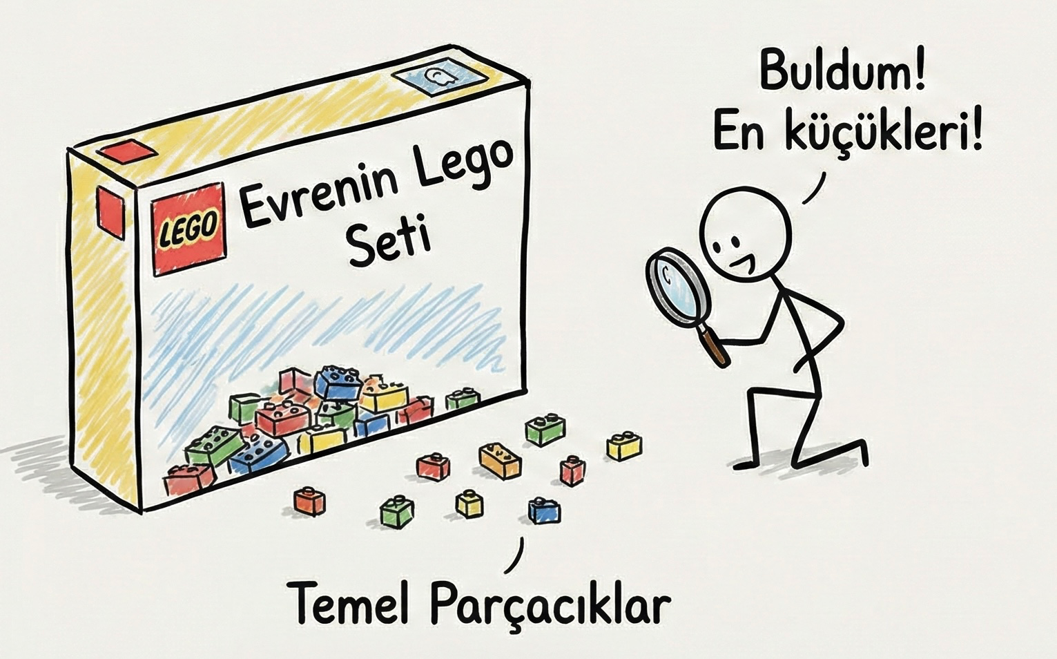 Fizikte "temel parçacık" dediğimizde, gündelik hayattaki "temel" kavramından biraz daha fazlasını kastederiz. Bunu devasa bir Lego seti gibi düşünelim. Elinizde bazı hazır birleştirilmiş parçalar (protonlar ve nötronlar) vardır bir de artık daha küçük parçaya ayrılamayan setin en küçük, en saf yapıtaşları vardır. Bizim aradığımız da o en küçük parçalardır. Bilim insanları atomun derinliklerine indiklerinde, kuantum dünyasının garip kurallarıyla karşılaştılar. Burada parçacıklar bildiğimiz minik bilyeler gibi davranmıyor; bazen dalga oluyorlar, bazen ise parçacık. "Spin" dediğimiz, onların karakterini belirleyen kuantum kimlikleri bile var.